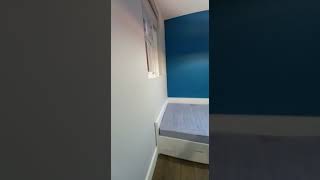 The Classic Smaller Accessible Studio is thoughtfully designed to provide comfort, practicality, and ease of movement. It features a double bed, a wardrobe, and convenient storage space to keep the room organized. Large windows bring in plenty of natural light, creating a bright and welcoming atmosphere. The private kitchen includes a cooking hob for simple meal preparation, while a dedicated study desk with chair supports daily tasks. A modern accessible en-suite bathroom and soft lighting from the lamp complete this functional studio.